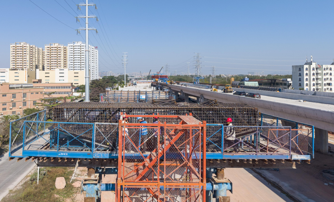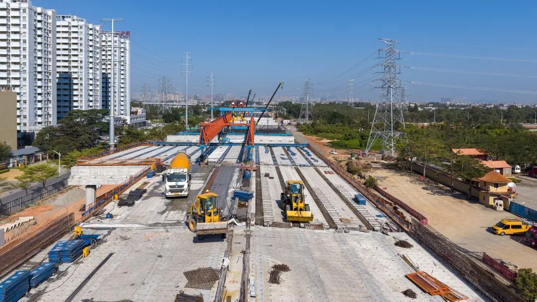 经过连月奋战,桥梁主体结构已基本完成,桥面铺装、护栏安装等后续工作正有序开展。记者在施工现场远处望去,笔直的桥身跨越市民大道与茂名大道交叉口,整齐的桥墩勾勒出未来城市交通动脉的雏形。施工方正科学调配人员、材料与设备,紧盯工期节点,全力保障主线贯通目标如期实现。