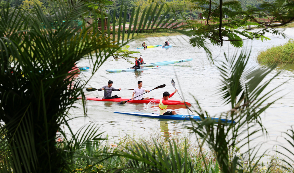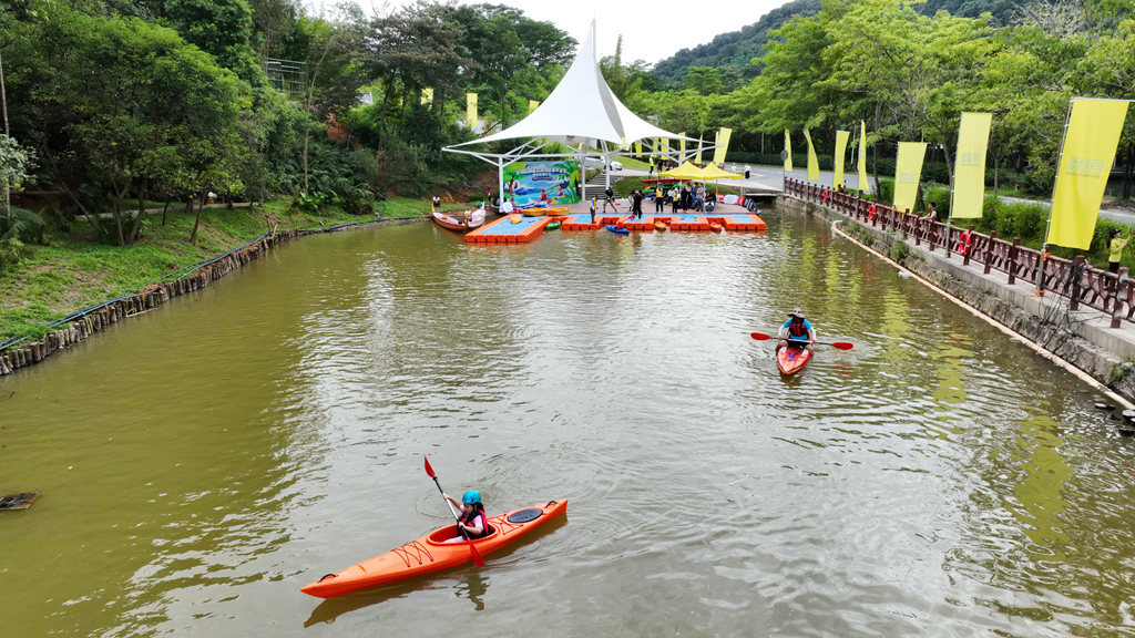 博罗县“百千万工程”指挥办副主任任宝祺介绍,横河镇户外运动小镇占地4000亩,依托当地的山水资源和地形地貌,可开展皮划艇、越野跑、摩旅、骑行等39项户外运动。这些项目既涵盖专业竞技内容,也包含亲子休闲体验,能够满足不同群体、不同水平的户外运动需求。